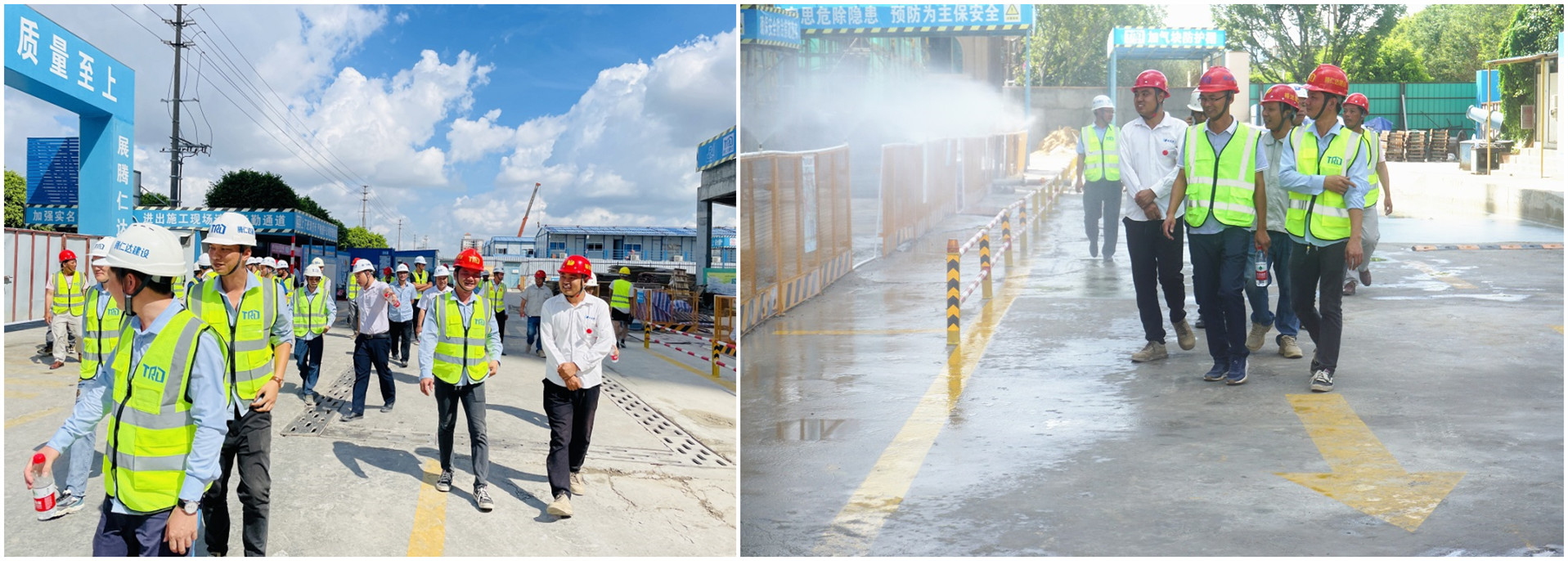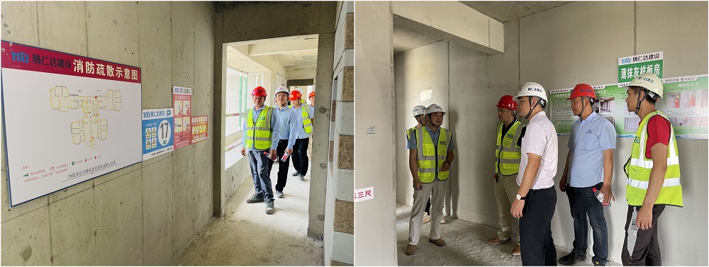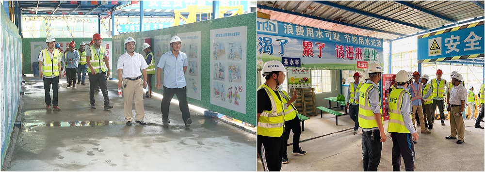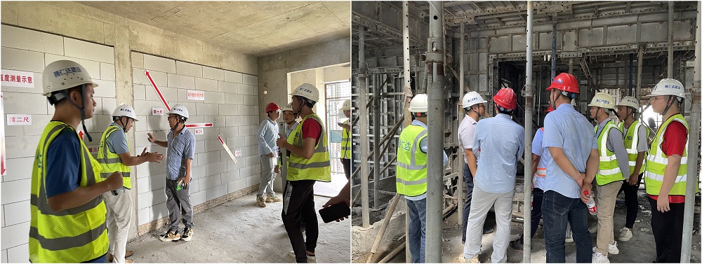 第二阶段,在公司领导的带领下,各项目部分组进行参观;大家先后参观学习安全文明施工、主体结构、砌体施工、抹灰工艺、铝膜安装、技术创新、信息化管理应用等等。