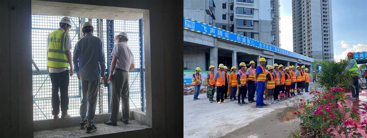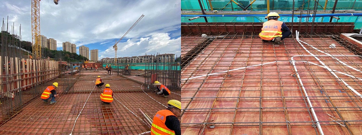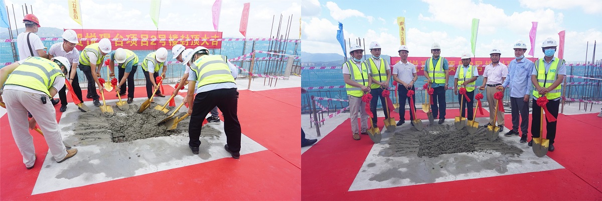 施工在19年的12月份开始,由于地下水资源丰富,施工节点多,抽水难度大,导致工期压力非常紧迫。面对这么大的压力,悦璟台项目部全体成员在公司领导统筹指导下,精心安排,保安全、抓质量、赶进度,特别是在疫情期间,公司高度重视科学防疫、高效复工复产,争分夺秒,克服施工中的重重困难,在2021年6月17日顺利完成2#主体结构的封顶。