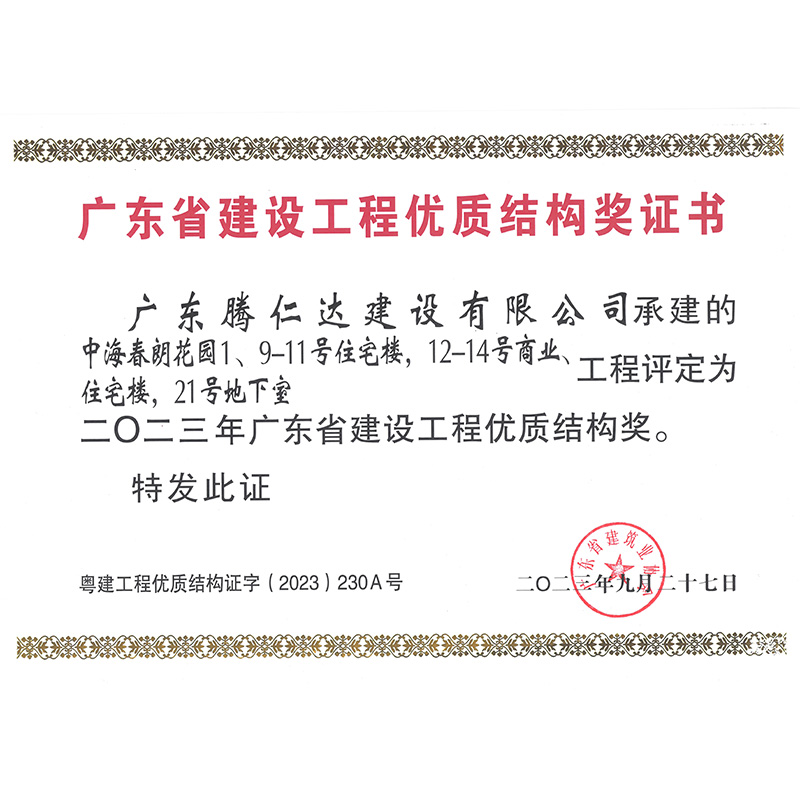 腾仁达=项目荣誉+证书+2023年中海春朗花园优质结构奖