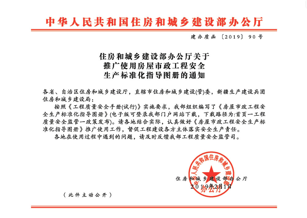住房城乡建设部关于印发工程质量安全手 册(试行)的通知