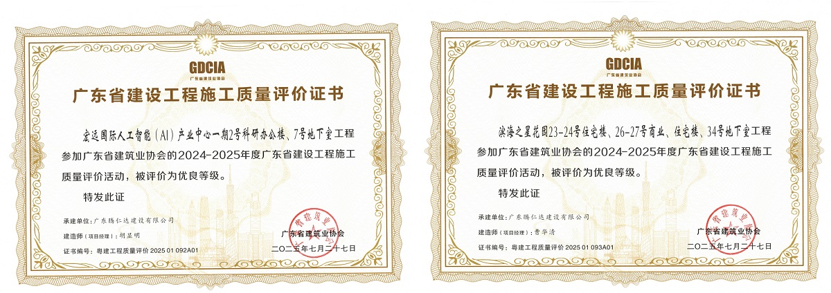 我司同时喜获国家级奖1个、省级奖5个,市级奖3个。旗峰山境项目工程荣获国家级奖;万科滨海之星、宏远国际人工智能项目赢得省级施工质量奖;东莞塘厦民营大厦、旗峰山境花园、森湖翠珑湾花园项目获得了省级结构质量奖;旗峰山境花园、远东瑞丰中心、天宝湾区天地广场项目工程获得东莞市级安全文明施工示范奖!